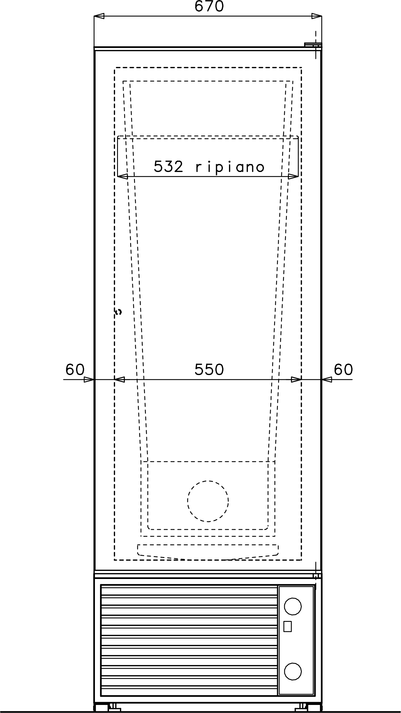 Armadio refrigerato professionale verticale monoporta battente, a temperatura positiva per la conservazione in classe 4M1 di latticini, frutta, verdura, carne, salumi e bevande.