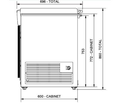 Espositore refrigerato orizzontale a temperatura positiva, con coperchio a ribalta, per la coservazione in classe 4 da +1°C a +9°C