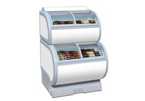 Vetrina refrigerata orizzontale negativa doppia esposizione per gelati, con prestazioni 7L1 e temperature da -25°C a -18°C, per vendita d'impulso.